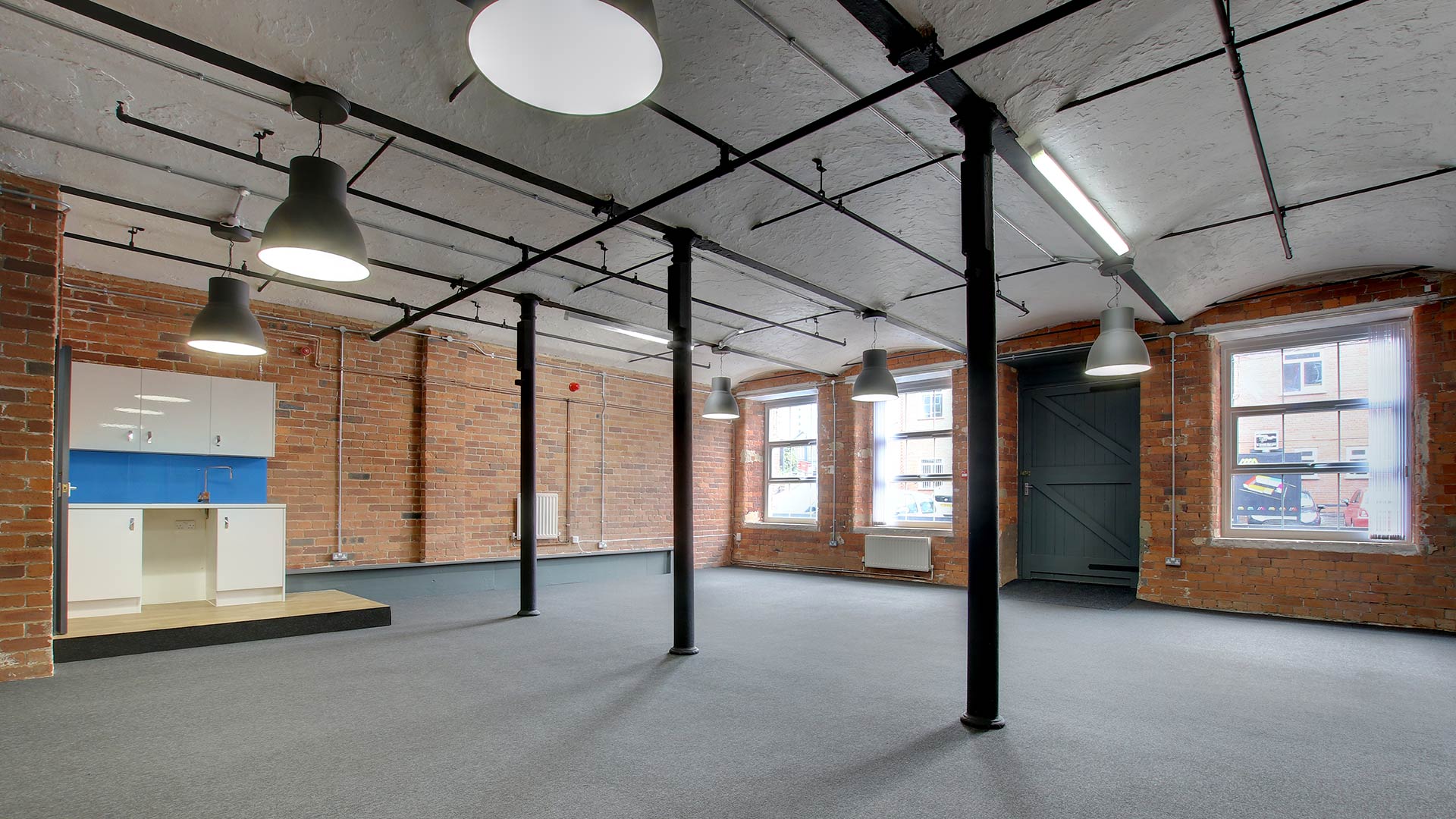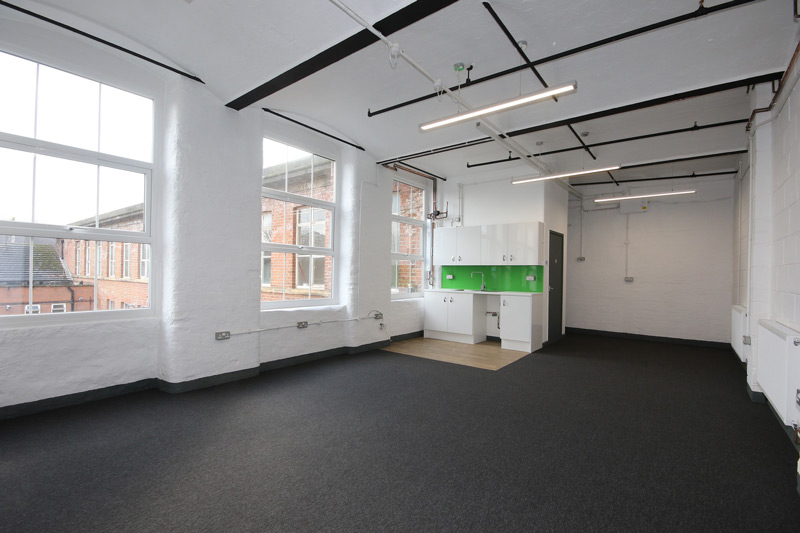 - Large open plan office/studio space with purpose built fully glazed meeting room
